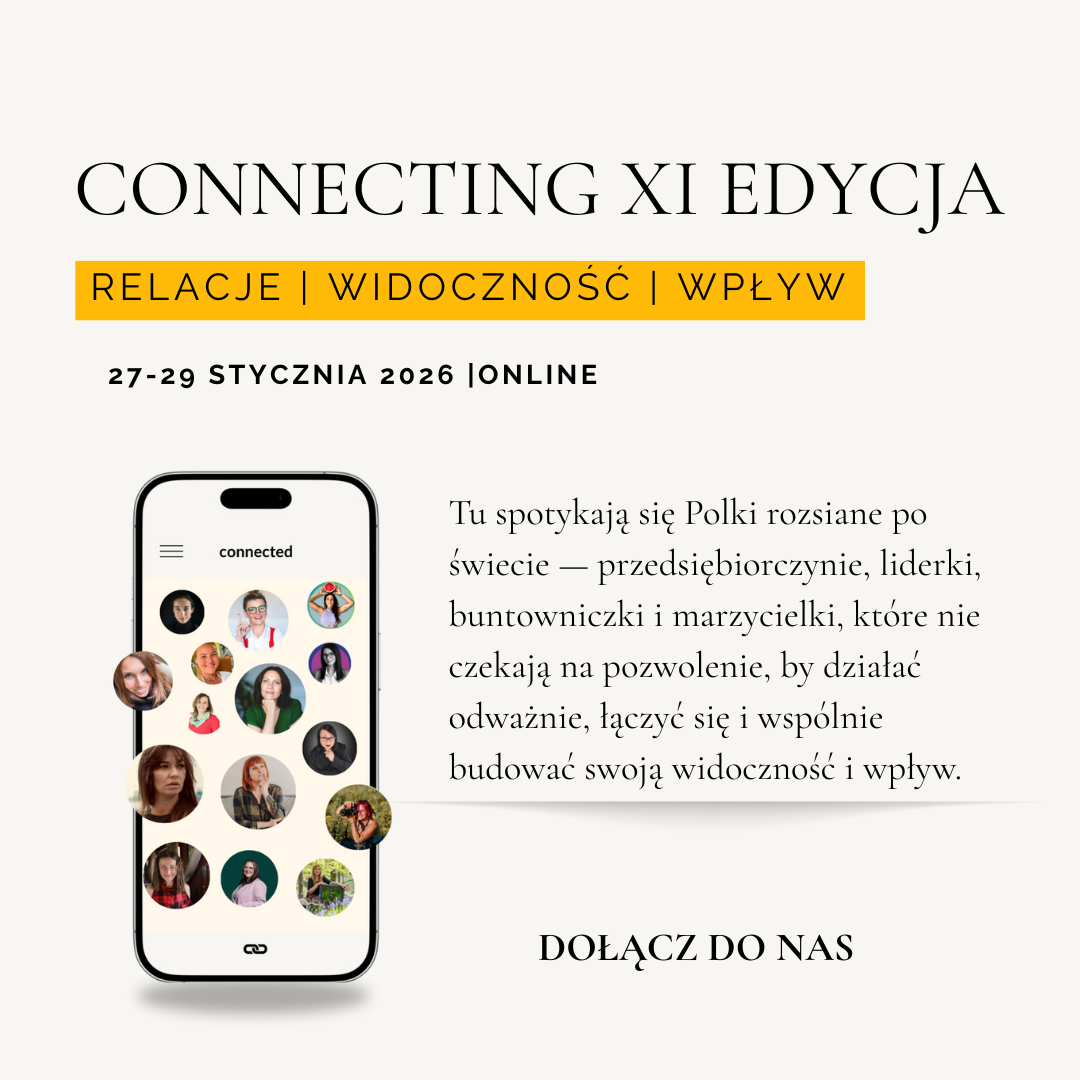 Zaufałam więc swojej intuicji i w lutym 2023 roku po raz pierwszy zorganizowałam trzydniowe wydarzenie networkingowe online – Connecting, które połączyło Polki z całego świata. Relacje, współprace i sukcesy klientek, które z tego wynikły z tego wydarzenia, przekroczyły moje najśmielsze wyobrażenia — i wtedy wiedziałam, że znalazłam swoje powołanie.